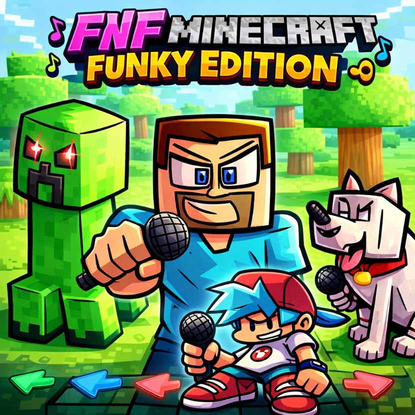 FNF: Minecraft Funky Edition is a unique mod that blends Friday Night Funkin’ with the iconic pixel world of Minecraft. In the game, you will join music battles featuring familiar characters like Steve, Creeper, and other mobs. Your goal is to press the correct keys in time with the beat to win each battle.