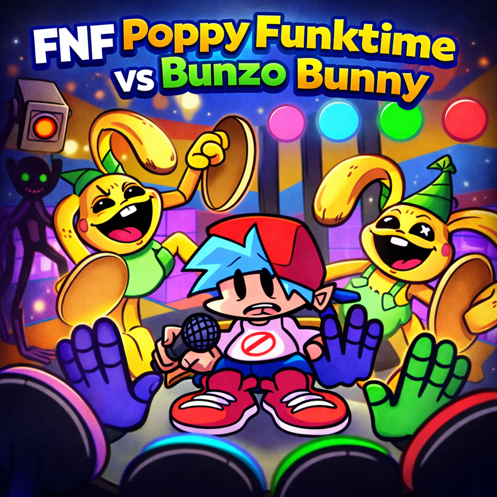 FNF Poppy Funktime vs Bunzo Bunny is a Friday Night Funkin’ mod that combines the horror universe of Poppy Playtime with classic rhythm gameplay. Players will enter an intense rap battle against Bunzo Bunny—the terrifying toy rabbit from the Playtime factory.