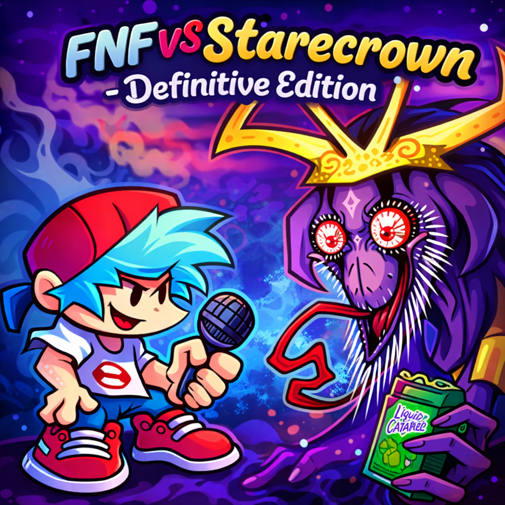FNF VS Starecrown – Definitive Edition takes you into a horror-themed FNF mod where the music is no longer cheerful but becomes eerie and intensely tense. The dark atmosphere, strange character design, and unsettling effects make every battle feel unusual and disturbing. The Definitive Edition brings full upgrades in visuals, sound, and overall polish, delivering a deeper and more frightening experience. The tracks are not only fast but also create a constant feeling of being watched throughout the gameplay. Do you have the courage to keep the rhythm in this haunting space? Face your fear and prove your skills now!